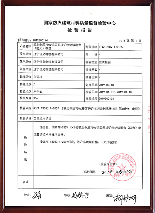 BTTZ-1x185抽檢報告